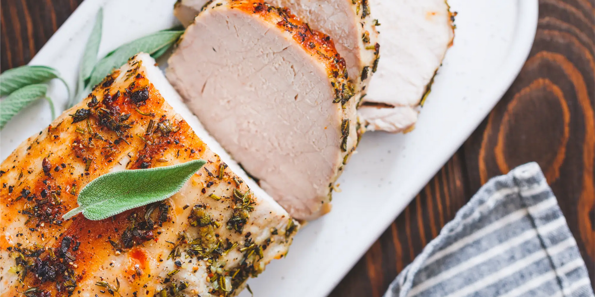 - 1 (10-rib) pork loin roast, 5 1/2 pounds, chine bone removed and rib bones frenched